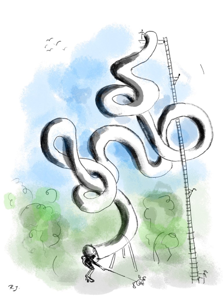 Met tassen en een hoofd vol stond ik even later bij mijn fiets. Het was al donker. Ik wilde niets liever dan naar huis. Maar daar verscheen hij weer. Of ik het toch ècht niet wilde overwegen een beenverlenging te ondergaan.